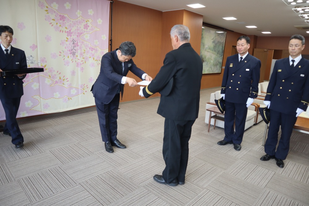 公開日: 2026年4月3日 令和8年4月2日金沢市役所にて、金沢市第一消防団長の辞令交付式及び金沢市消防団連合会長及び副会長の委嘱式を行いました。4月からの新体制に伴い、村山市長から辞令と委嘱状の交付が行われました。